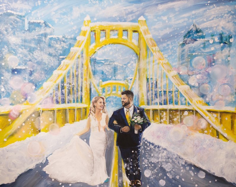Angie Candell of The Storybook Painter creates romantic, storybook-style live paintings at weddings and events throughout Pittsburgh and Western Pennsylvania.