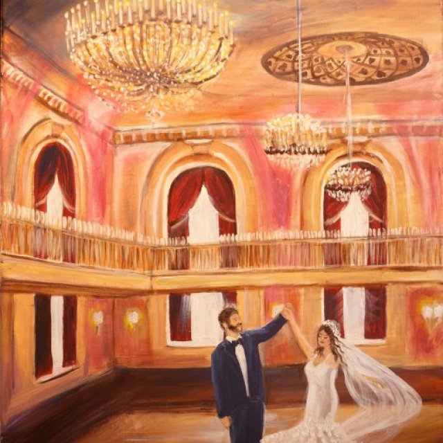 During your celebration, Angie paints your ceremony or first dance in real time, creating a one-of-a-kind keepsake your guests love watching come to life.
