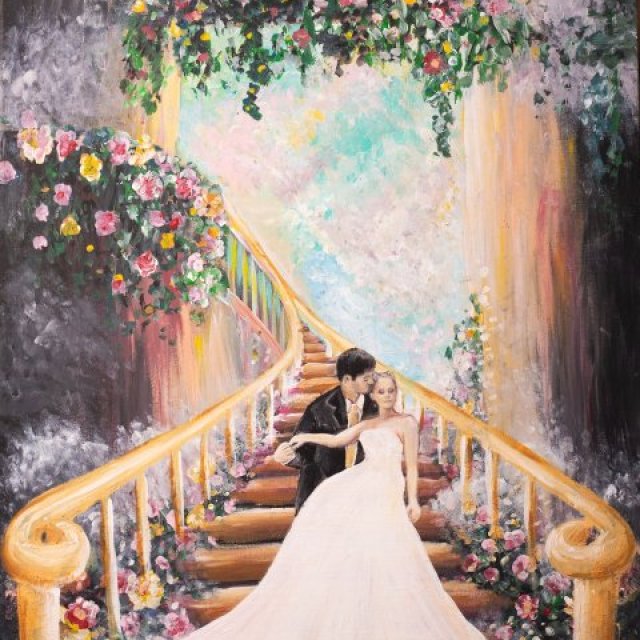 Live wedding painting also doubles as interactive entertainment, giving guests a memorable experience and couples a meaningful heirloom.