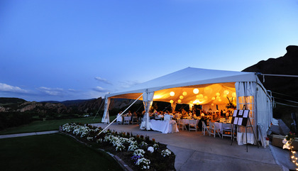 Tent Pavilion (seats 200). This stand-alone structure proudly stands next to a massive red rock formation. The tent walls can remain lifted and guests will see stunning views of the flat irons.